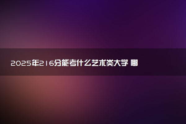 2025年216分值得报的艺术类大学有:大连艺术学院、广东亚视演艺职业学院、科尔沁艺术职业学院、重庆艺术工程职业学院、南充电影工业职业学院等。