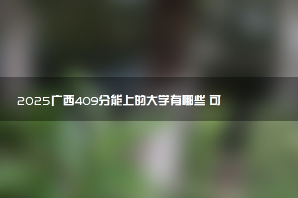 广西409分可以上的大学有山东女子学院、湖南铁路科技职业技术学院、黑龙江外国语学院、中原工学院、天津医科大学临床医学院、四川护理职业学院等,在选择大学时,考生和家长需要综合考虑学校的地理位置、专业设置、教学质量、就业前景以及个人兴趣等因素。同时,也要注意学校的学费、住宿条件、奖学金政策等实际问题。