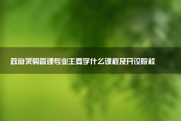 在志愿填报时考生和家长就想知道政府采购管理专业主要学习什么?下面我们就用详细说一下:政府采购管理专业代码:530103、门类:财经商贸、专业类:财政税务类,政府采购管理专业课程主要有:财政学基础、招标采购实务、政府采购管理概论、经济学原理、非招标采购实务、电子招投标实务等课程。