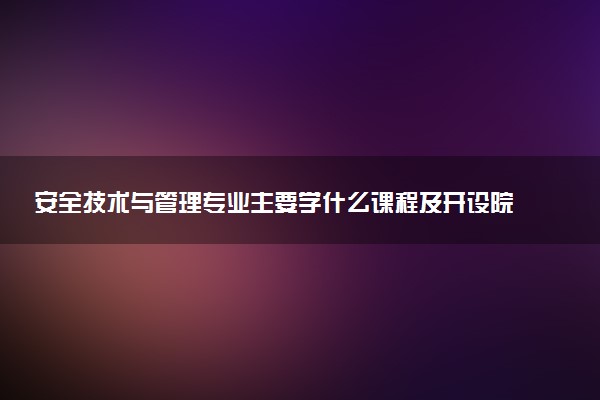 在志愿填报时考生和家长就想知道安全技术与管理专业主要学习什么?下面我们就用详细说一下:安全技术与管理专业代码:420901、门类:资源环境与安全、专业类:安全类,安全技术与管理专业课程主要有:工业通风与除尘、电气安全技术、智能安全监测与监控技术、职业卫生、安全生产法律法规、安全管理等课程。