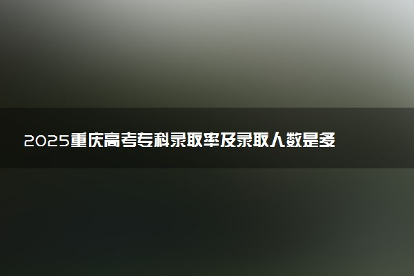 2025年,重庆市普通高校招生考试报名37.2万人,除高职分类考试招生、保送生等已录取考生和体育单招等不参加统一高考的考生外,应参加统一高考的考生21.6万人,2025重庆高考专科录取率预估在46%左右,录取人数预估是17万人左右,具体录取情况大家以官方发布数据为准。