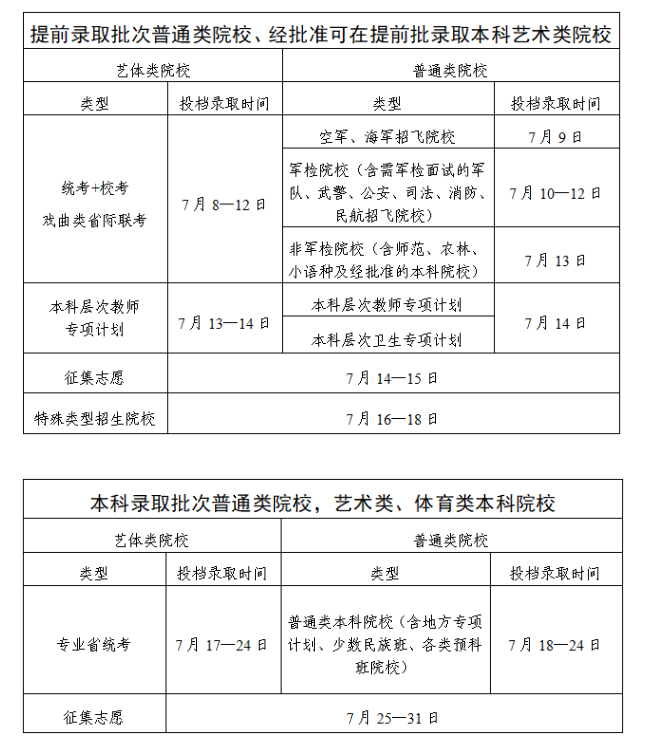 招生录取工作日程表如有变动,请以省教育考试院官微官网相关通知为准。