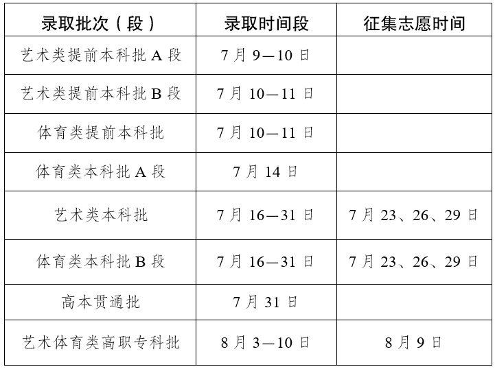 根据2025年云南高考录取安排,不同批次的录取结果公布时间差异较大,具体如下:
