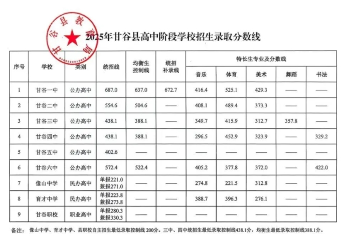 从天水教育发布获悉,2025年甘肃天水市各县区普通高中招生录取分数线汇总已公布。天水市下辖2个市辖区、5个县,共设有10个街道办事处、113个乡镇。具体详情如下: