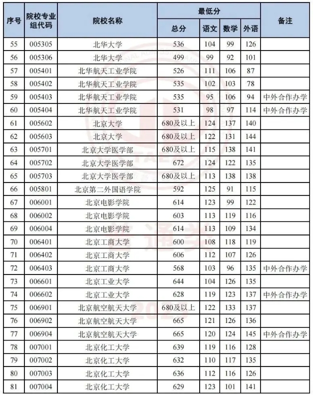 注:由于文章篇幅有限,小编只整理了部分院校投档分数线,供参考!