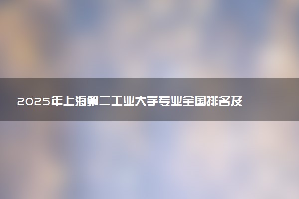 在最新校友会2025中国大学排名中,上海第二工业大学位列全国第441名,名列2025中国理工类大学排名第206名,位列2025上海市大学排名第29名。在校友会2025中国大学分类排名中,上海第二工业大学入选应用型大学行列,被评为2025中国应用型大学。在校友会2025中国大学星级排名中,上海第二工业大学荣膺2025中国二星级大学(2★)美誉,跻身中国区域高水平大学行列。