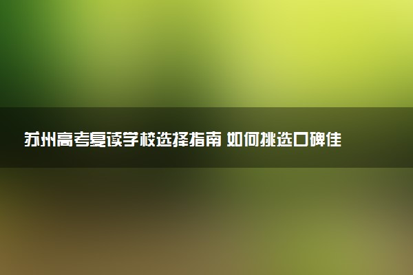 高考复读对于许多学生来说是追求更好未来的重要选择。然而,在苏州众多的复读学校中,如何挑选一所口碑佳、教学质量高的复读学校呢?本文将为您提供一些实用的建议,帮助您在众多选择中找到最适合的复读学校。
