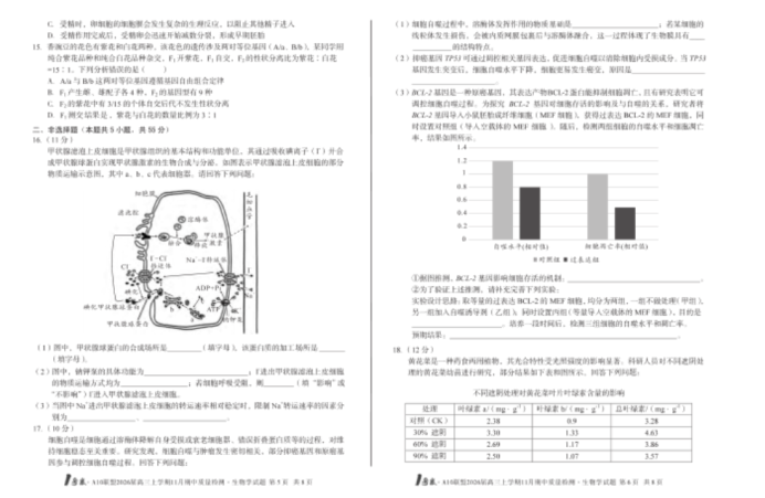 2026届安徽A10联盟高三上学期11月期中质量检测生物试题及答案解析