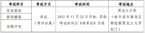 黑龙江2026播音与主持类统考时间及考点安排如下: